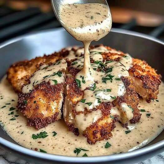 This Crispy Parmesan Chicken with Garlic Cream Sauce is the kind of comforting, crowd-pleasing dish that feels both elegant and deeply satisfying. Juicy chicken breasts are coated in a crunchy Parmesan and breadcrumb crust, pan-fried until golden and crisp, then finished with a luscious garlic cream sauce that brings everything together. It’s perfect for a cozy dinner, special occasions, or when you want a restaurant-quality meal at home.