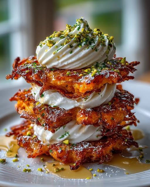 Crispy Sweet Potato Fritters with Whipped Ricotta, Honey & Pistachio Crunch