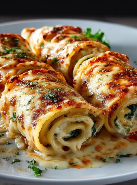 Baked Version: Arrange filled crepes in a dish and bake with cheese on top.
