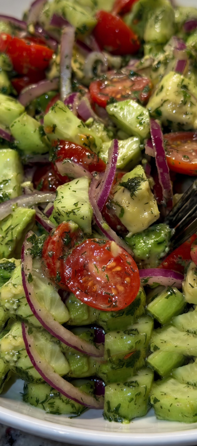 Cucumber Tomato Avocado Salad is a simple yet flavorful dish that highlights fresh, wholesome ingredients in the best way. With its crisp vegetables, creamy avocado, and zesty citrus dressing, it’s light, refreshing, and incredibly versatile. Whether served as a side dish or a light meal, it delivers freshness and nutrition in every bite.