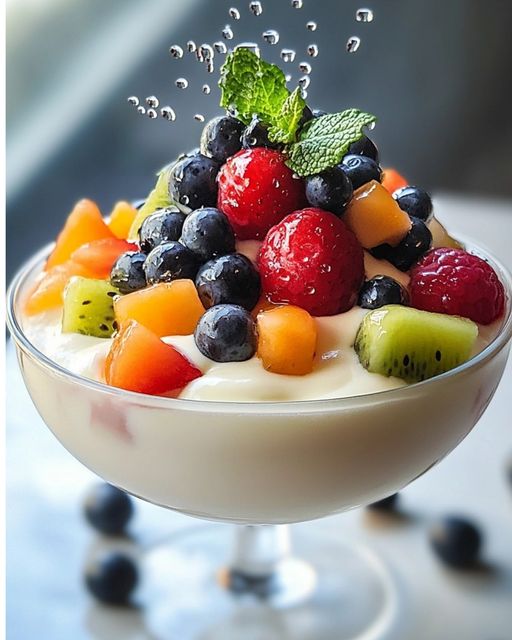 This Milk and Fruit Dessert is the ideal light, sweet, and nourishing treat. It comes together quickly. Have fun.