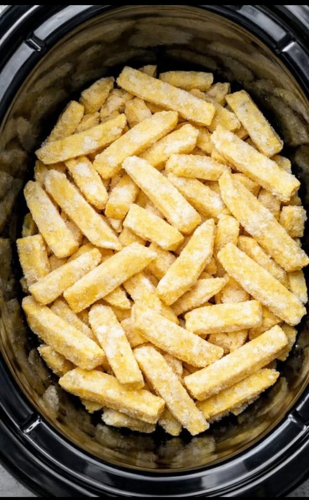 Dump the frozen steak fries directly into the slow cooker. No need to thaw them.