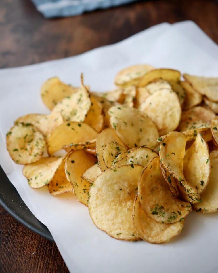 Air Fryer Potato Chips — Looking for a healthier alternative to traditional fried potato chips? Look no further than your air fryer! You can make crispy, delicious potato chips right at home using just a tiny amount of oil. Best of all, they’re much lower in fat and calories than their fried counterparts. Give them a try today!