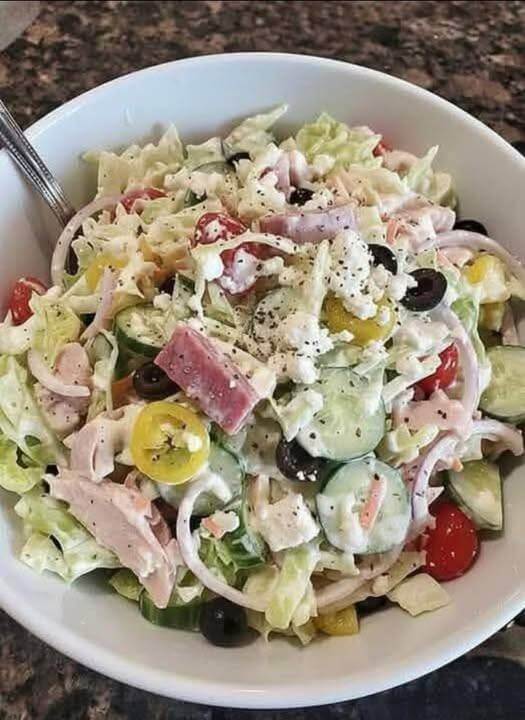 This easy Mediterranean chopped salad has quickly become a go-to lunch for days when you want something fresh, satisfying, and protein-packed without spending time measuring or cooking. It’s the kind of recipe you can throw together straight from the fridge—crisp lettuce, juicy vegetables, salty olives, creamy feta, and tender turkey or chicken, all tied together with a bright homemade dressing. It’s light enough to keep you energized, yet filling enough to hold you through the afternoon.