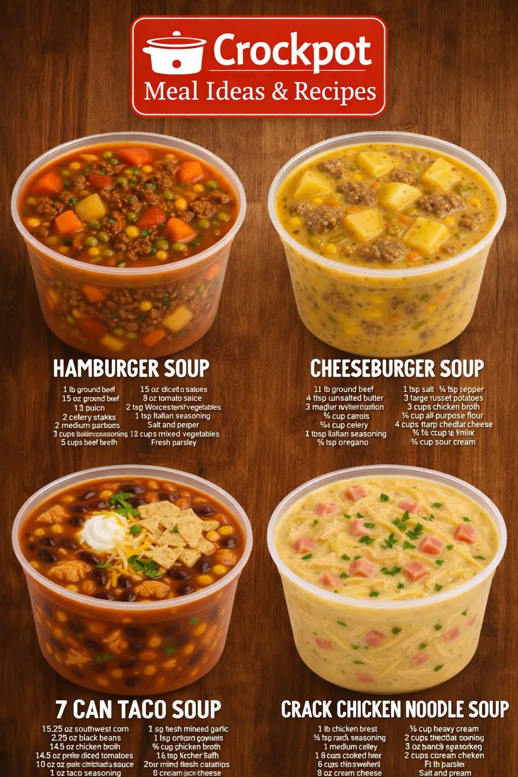 CROCKPOT HAMBURGER SOUP Hearty, classic & freezer-friendly Ingredients 1 lb ground beef 1 small onion, diced 2 celery stalks, sliced 2 medium potatoes, diced 15 oz diced tomatoes 8 oz tomato sauce 2 tsp Worcestershire sauce 1 tsp Italian seasoning ½ tsp salt ½ tsp black pepper 5 cups beef broth 2 cups frozen mixed … Read more