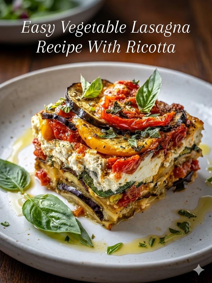 This Easy Vegetable Lasagna with Ricotta is a comforting, flavor-packed dish layered with roasted vegetables, creamy ricotta filling, rich marinara, and melted cheese. It’s a wholesome vegetarian option that doesn’t feel like a compromise—each bite is hearty, satisfying, and full of Mediterranean-inspired flavors. Perfect for family dinners, meal prep, or entertaining, this lasagna brings together simplicity and elegance in one dish.