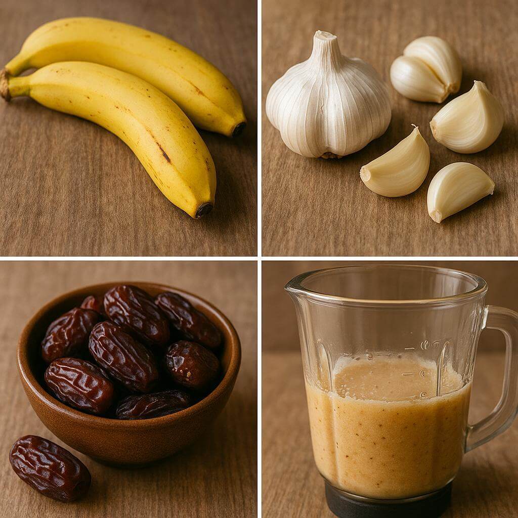 Unveil the magic of mixing bananas, garlic, and dates – a delightful concoction brimming with nutrients, energy, and healing wonders. This potent blend serves as a natural superfood remedy offering a boost to your immunity, digestion, and overall well-being!