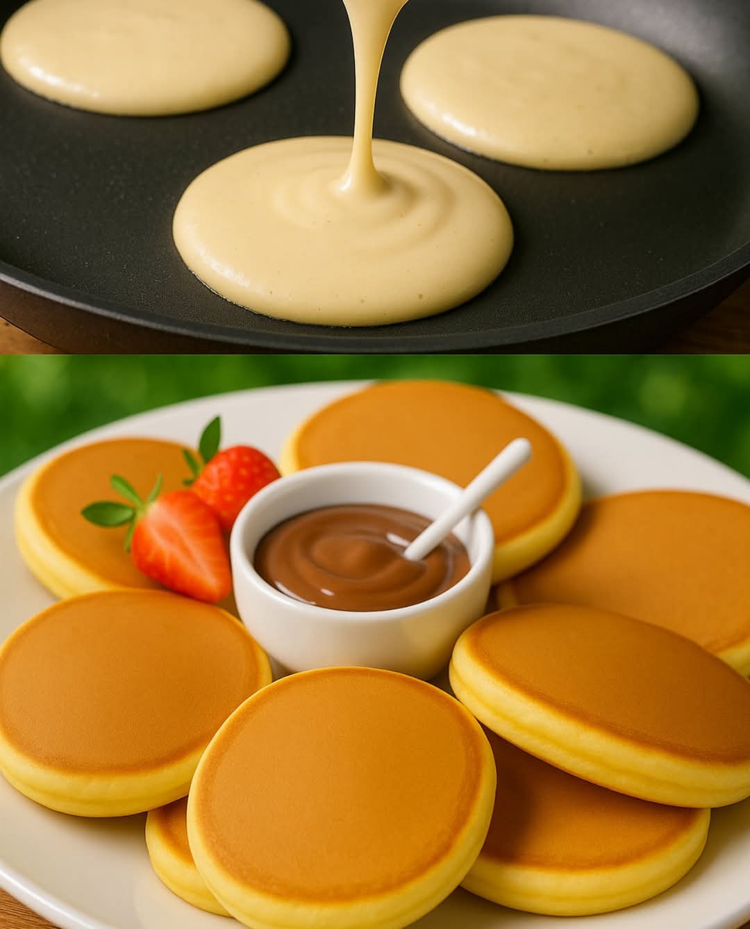 These pillowy, golden pancakes are soft, slightly sweet, and absolutely irresistible. Perfect for breakfast, brunch, or even dessert, they pair beautifully with fresh fruit and a drizzle of chocolate or maple syrup. Easy to make and sure to impress!