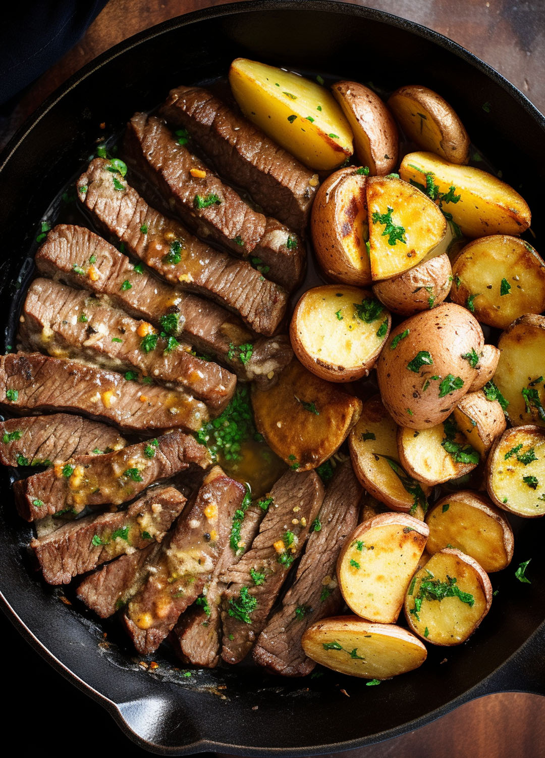 - Drizzle Garlic Butter: Once the steaks have rested, drizzle the garlic butter over the steaks and potatoes.