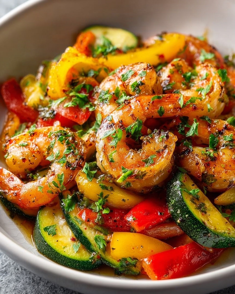 This quick, colorful dish pairs succulent shrimp with tender zucchini and vibrant bell peppers, all sautéed in a fragrant garlic and olive oil sauce. It’s perfect for weeknight dinners, meal prep, or a light and healthy seafood option. With a touch of paprika, Italian herbs, and optional chili flakes, it’s flavorful, low-carb, and ready in under 20 minutes.
