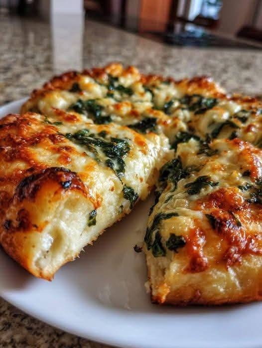 Garlic & Spinach White Pizza on Cottage Cheese Crust