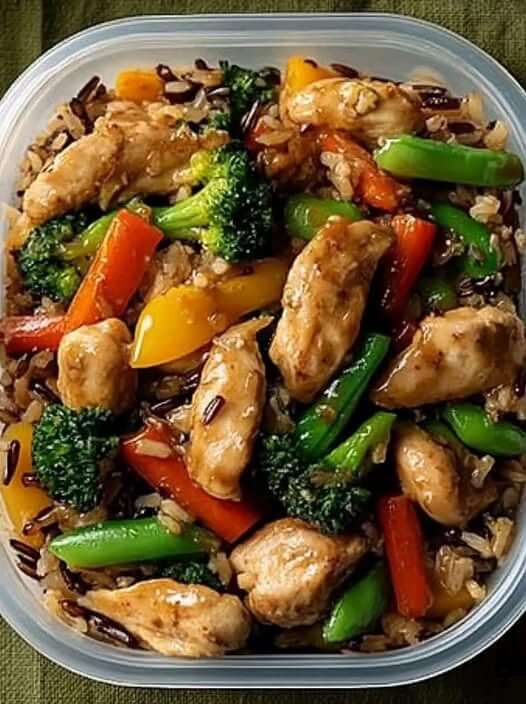 Glossy Teriyaki Chicken Power Stir-Fry with Vibrant Garden Vegetables and Nutty Wild Rice