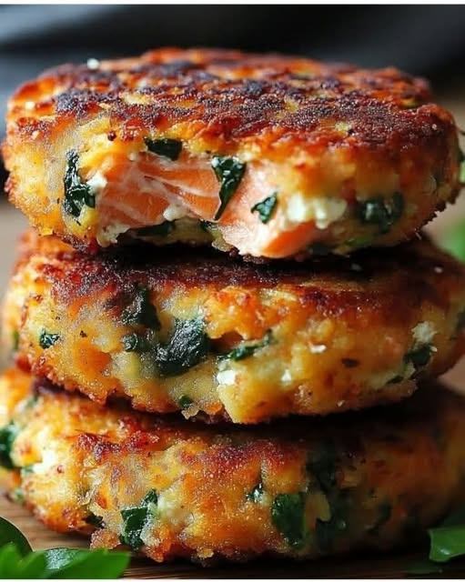 These crispy salmon cakes are loaded with flaky salmon, creamy feta, and vibrant spinach. They’re rustic, satisfying, and perfect for a light dinner, hearty lunch, or elegant appetizer.
