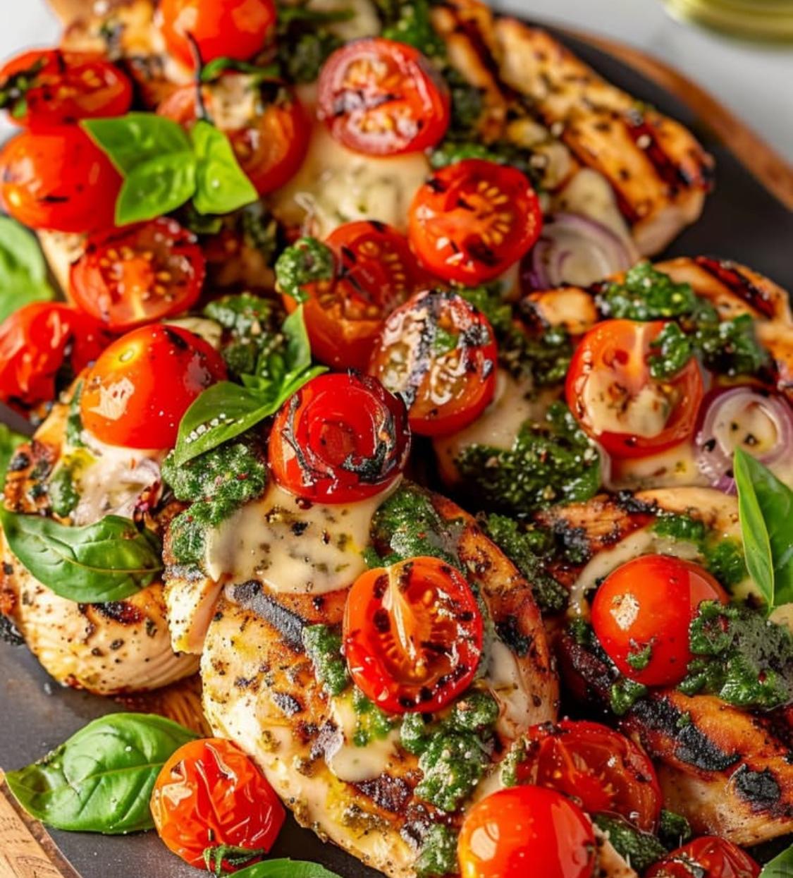 Grilled Caprese Chicken is a perfect blend of fresh ingredients bold flavors and easy preparation making it an ideal dish for any occasion. Whether you are looking for a quick weeknight dinner a healthy meal prep option or a flavorful dish to impress guests this recipe delivers every time. The combination of juicy grilled chicken melted mozzarella roasted cherry tomatoes and aromatic basil brings a taste of Italy straight to your plate.