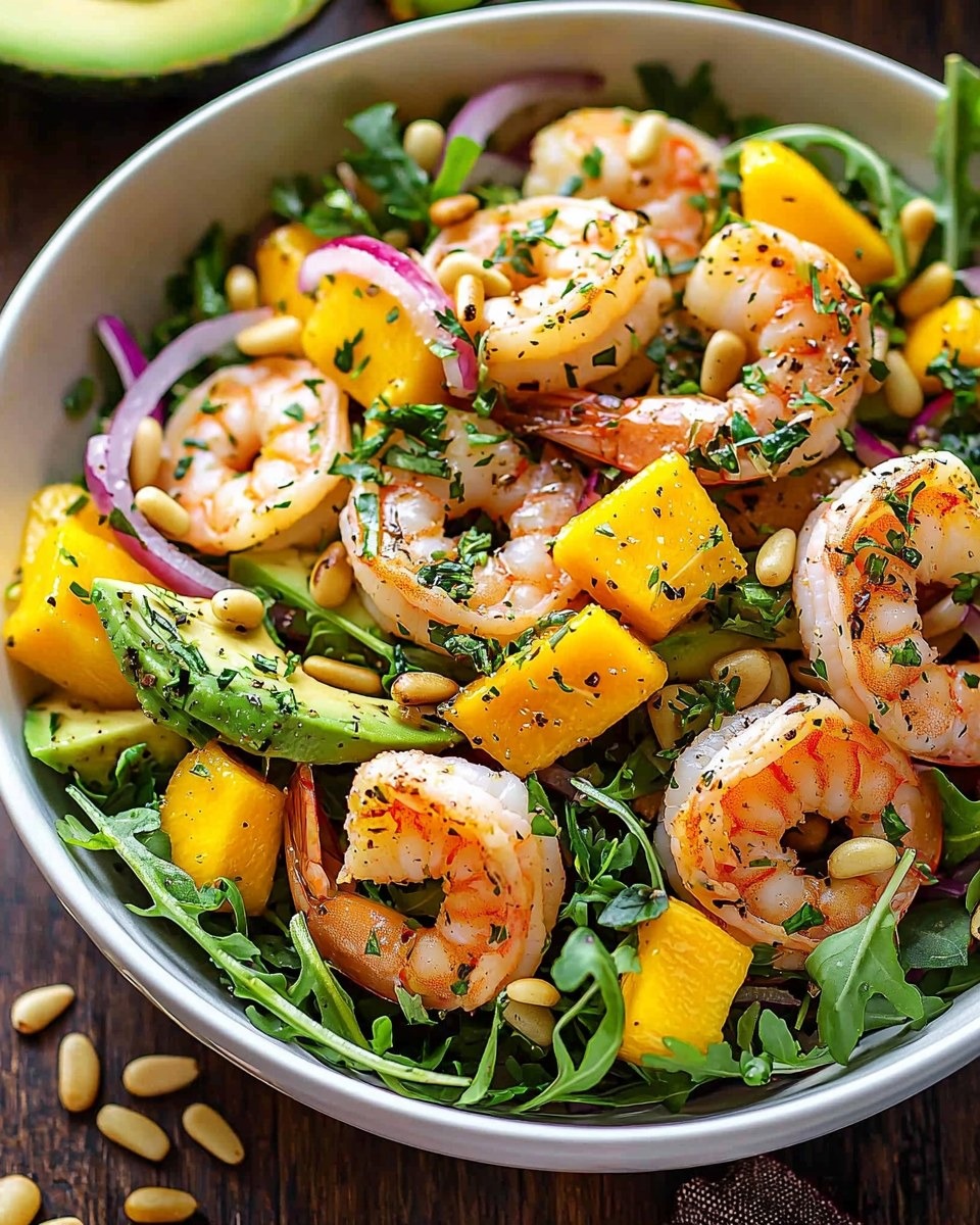 This vibrant and refreshing salad is packed with bold flavors combining succulent grilled shrimp with sweet mango creamy avocado and a zesty dressing. It’s perfect for a light lunch or a summer dinner.