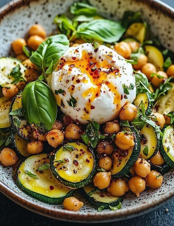 A vibrant, protein-packed salad that’s as gorgeous as it is delicious. Tender, smoky zucchini and hearty chickpeas are paired with creamy burrata and drizzled in a bright, spicy chili-lime vinaigrette. Perfect for a light lunch, a dinner side, or an impressive summer buffet dish.