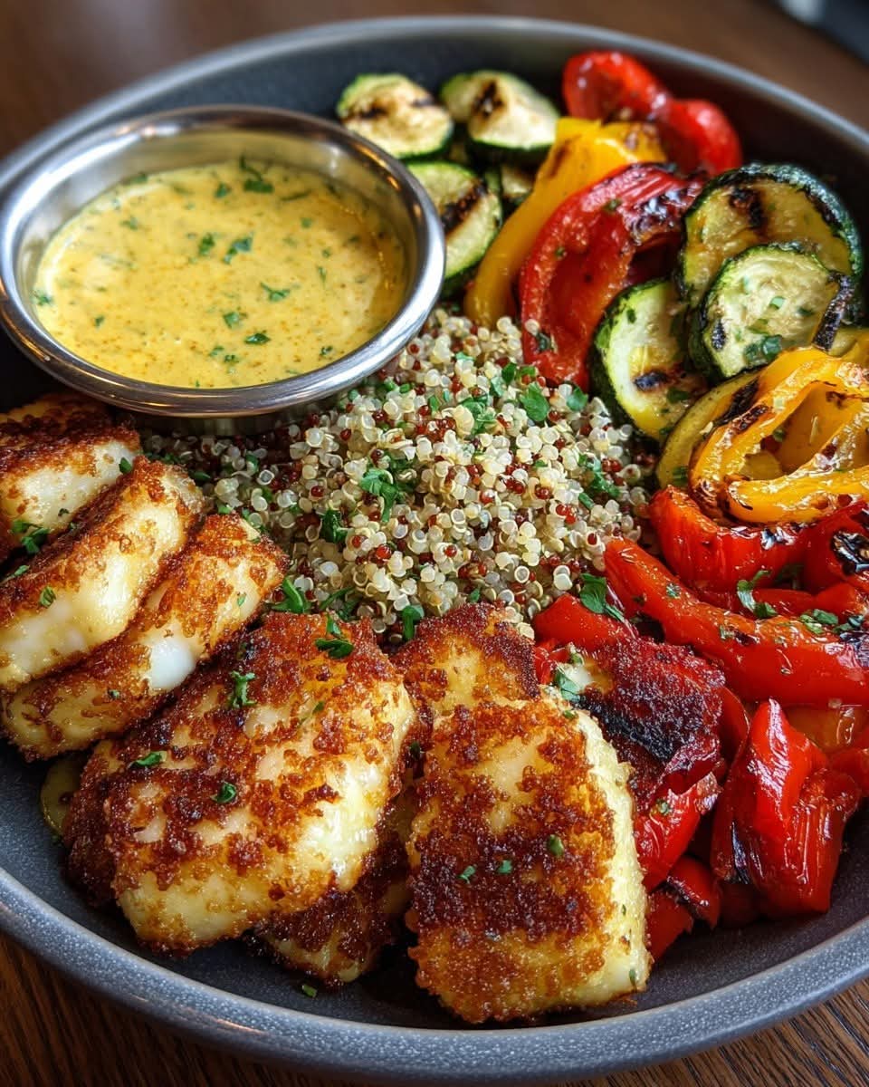 This Halloumi & Quinoa Bowl with Roasted Veggies and Tahini-Lemon Sauce is a balanced, flavor-packed meal that feels both wholesome and satisfying. The fluffy quinoa, caramelized vegetables, golden halloumi, and creamy citrus sauce create layers of texture and taste in every bite. Whether you’re preparing it for a quick dinner or weekly meal prep, it’s a versatile recipe that delivers both nutrition and bold Mediterranean-inspired flavor.