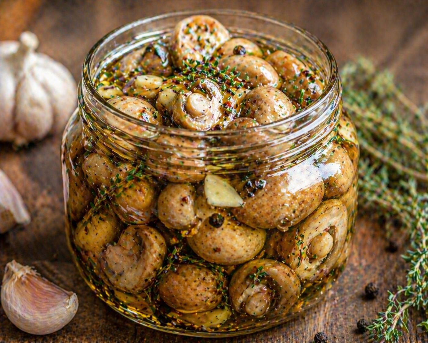 Homemade Pickled Mushrooms with Garlic and Thyme