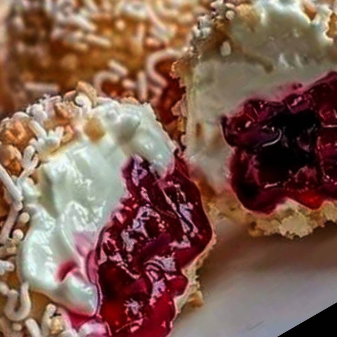 The crunchy, golden outside contrasts with the creamy, rich inside of these bite-sized sweets, and the explosion of tart berry compote puts the icing on the cake.