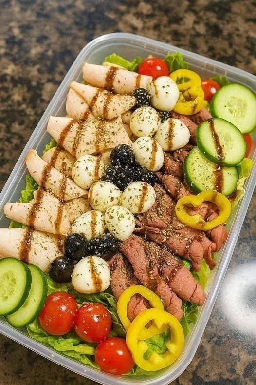 Italian Sub Salad brings together everything you love about a deli sandwich in a lighter, fresher format. The savory turkey and roast beef, briny olives, crisp vegetables, and sweet balsamic glaze create a balanced and satisfying meal without the heaviness of bread.