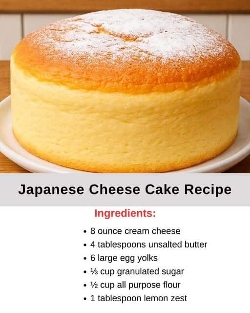 Japanese Cheesecake, also known as “Cotton Cheesecake” or “Soufflé Cheesecake,” is a light, airy dessert that melts in your mouth. Unlike traditional dense cheesecakes, this version combines whipped egg whites with a creamy cream cheese base, resulting in a soft, cloud-like texture. It has a subtle sweetness and a delicate tang from cream cheese and lemon zest, making it perfect for an elegant dessert, afternoon tea, or a special occasion. This recipe is approachable for home bakers and produces a beautiful, puffed cheesecake that stays soft and tender without being overly rich.