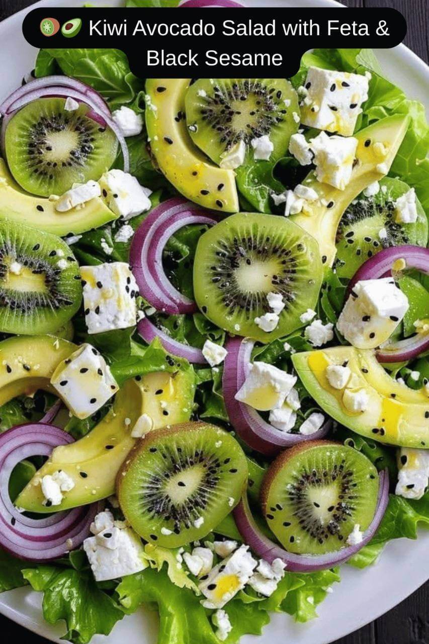 This Kiwi Avocado Salad is a fresh, vibrant dish that brings together sweet, creamy, tangy, and slightly savory flavors in a beautifully balanced way. Juicy kiwi adds brightness, while ripe avocado gives richness and a smooth texture. Crumbled feta introduces a salty contrast, and black sesame seeds add a subtle nutty crunch. Finished with a simple honey-citrus dressing, this salad is light yet satisfying. It works perfectly as a refreshing side, a light lunch, or even a standout addition to a larger spread.