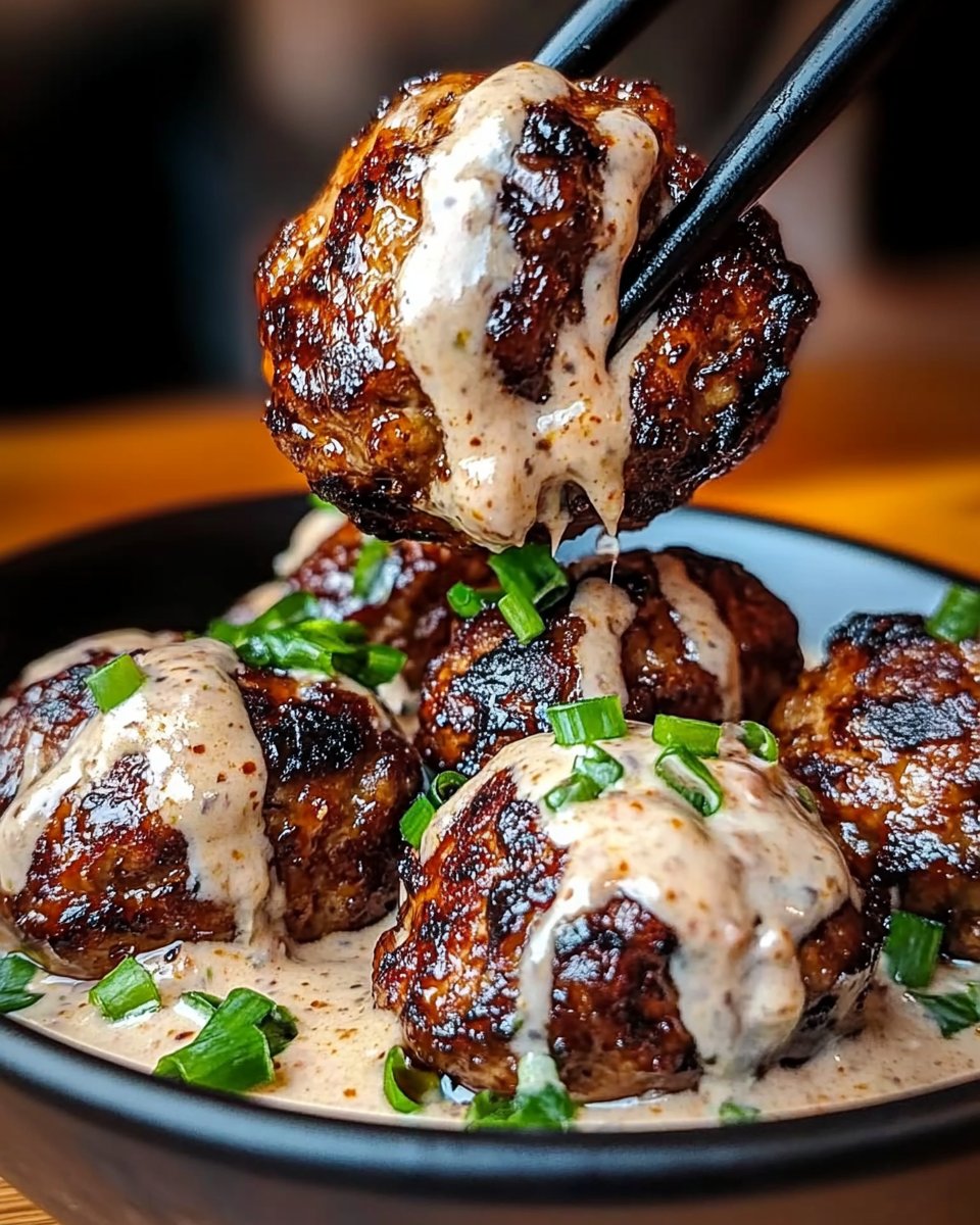 Korean BBQ Meatballs with Spicy Mayo Dip