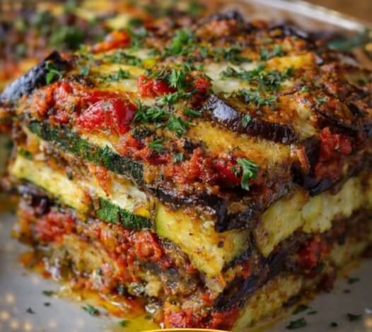 This layered Mediterranean bake is a celebration of summer vegetables, rich cheeses, and vibrant herbs. Roasted eggplant and zucchini form the base, complemented by sweet bell peppers and a luscious tomato sauce. Layers of lasagna sheets and creamy cheese create a comforting, hearty dish that feels indulgent yet wholesome. It’s perfect for a family dinner, meal prep, or even a vegetarian centerpiece for entertaining. The recipe is versatile—ricotta, herbed feta, or a three-cheese garlic drizzle can be used to customize richness and flavor.