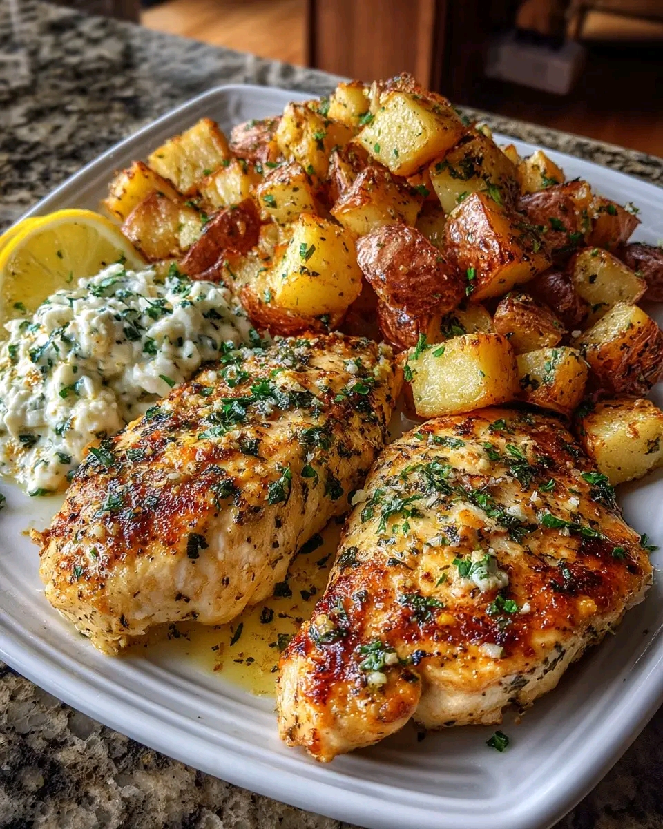 This Lemon Garlic Whipped Feta Chicken is a vibrant, restaurant-style dish that brings together juicy, seasoned chicken with a creamy, tangy whipped feta sauce. Paired with golden, crispy potatoes and finished with fresh lemon zest, it’s a perfect balance of rich, savory, and citrusy flavours. The whipped feta adds a luxurious texture, while the lemon brightens the entire dish—making it ideal for both weeknight dinners and special occasions.