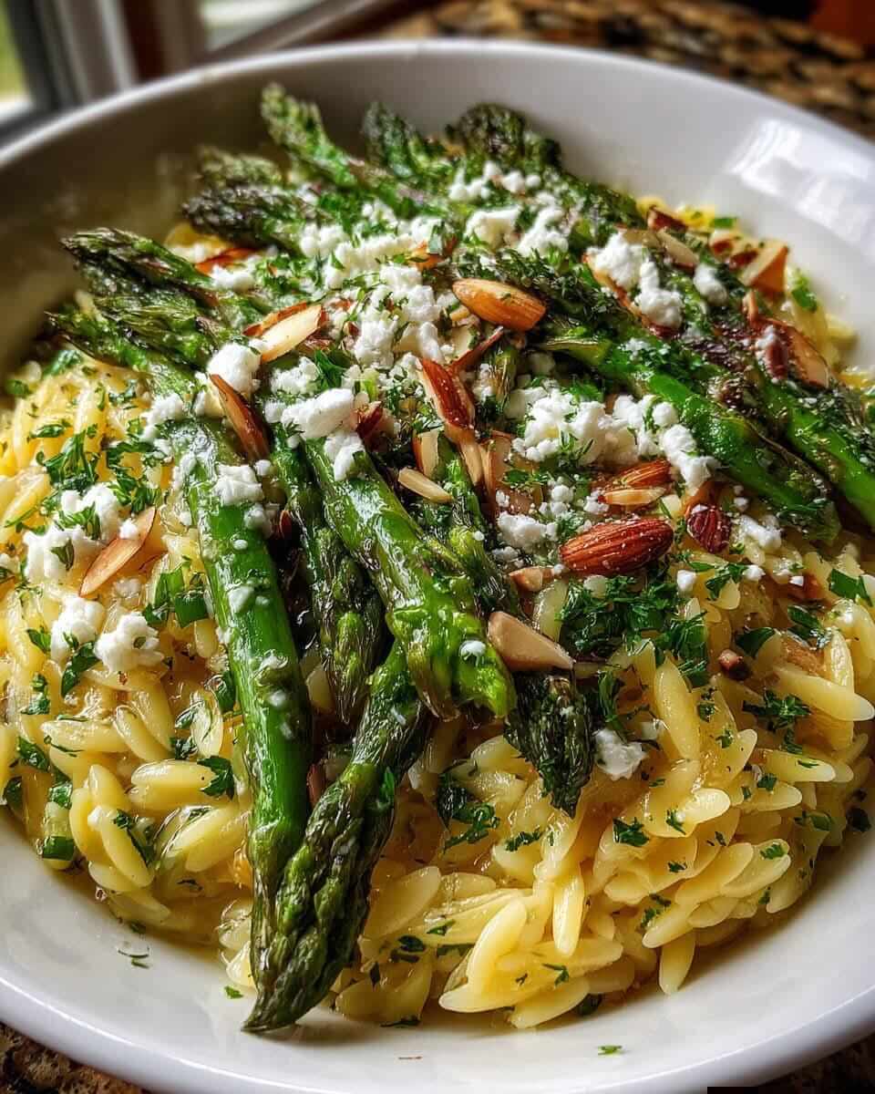 Lemon Herb Orzo with Asparagus, Feta, and Toasted Almonds is a fresh and vibrant Mediterranean-inspired dish that is both simple and satisfying. Orzo, a small rice-shaped pasta, cooks quickly and easily absorbs flavors, making it perfect for light pasta dishes. In this recipe, tender asparagus is paired with bright lemon, aromatic herbs, creamy feta cheese, and crunchy toasted almonds for a delicious balance of taste and texture.
