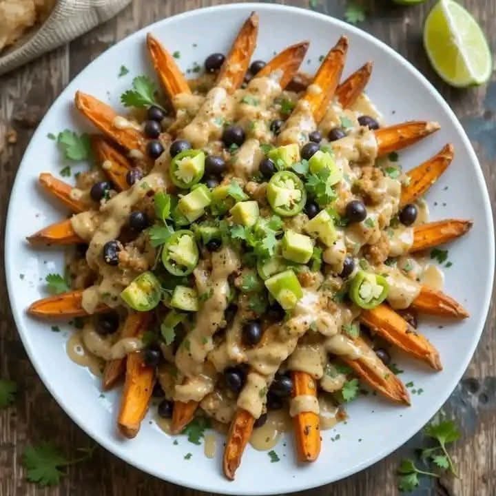 Enjoy these smoky, creamy, and flavor-packed loaded sweet potato fries!