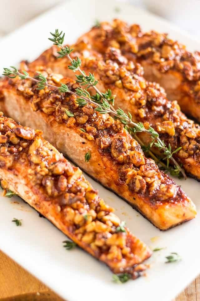 Brown Sugar Walnut Salmon – Replace maple syrup with brown sugar glaze.