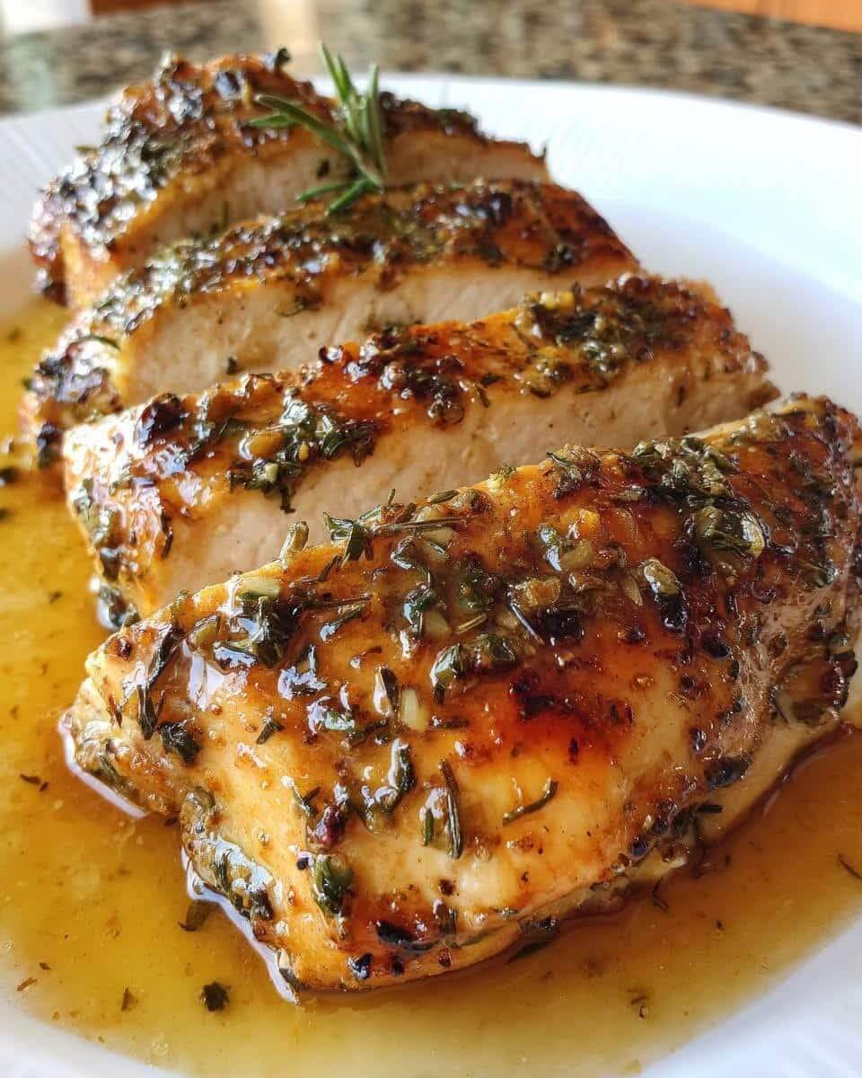Transfer the chicken to a plate and let it rest for 5 minutes before slicing. Garnish with fresh herbs or a sprinkle of lemon zest.