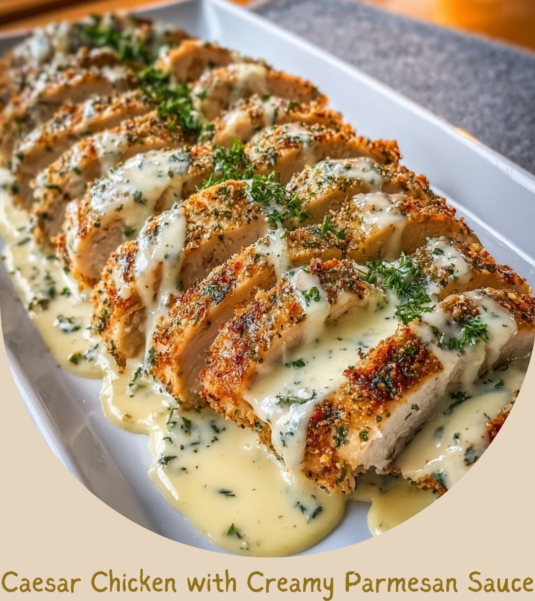 Mediterranean Baked Caesar Chicken with Creamy Parmesan Sauce