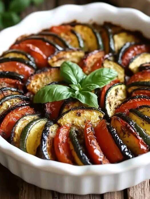 A colorful and heartwarming vegetable dish straight from the sunny Mediterranean. This baked ratatouille layers fresh tomatoes, zucchini, and eggplant in a beautiful spiral, then bakes them in a savory herb-infused sauce until tender. It’s perfect as a light main with crusty bread or as a side to grilled chicken, fish, or pasta.