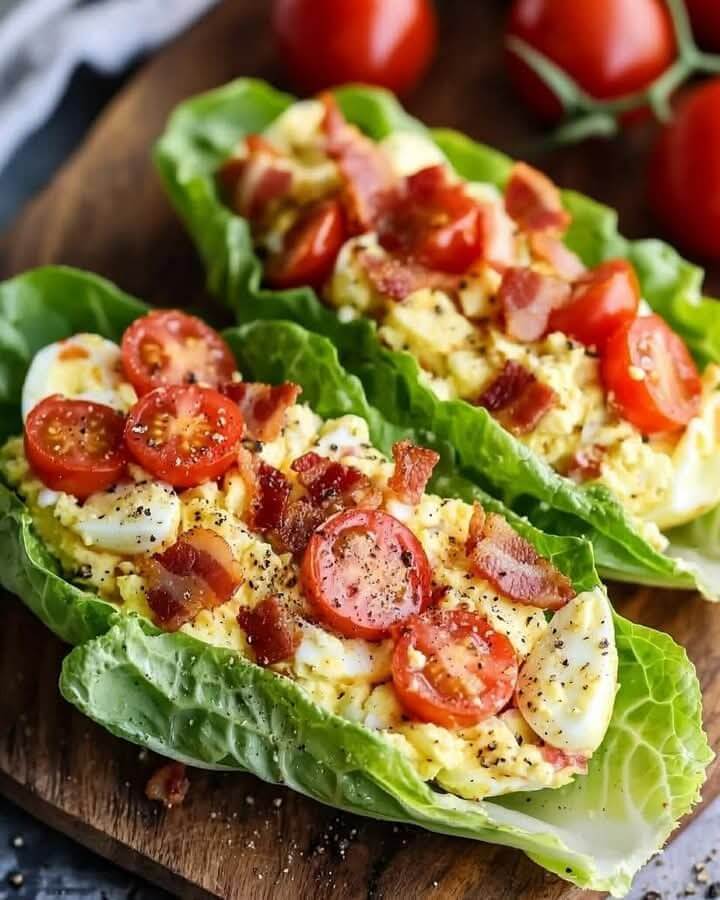 This recipe takes the classic BLT and gives it a fresh, Mediterranean-inspired twist by swapping bread for crisp romaine leaves and adding a tangy Dijon-kissed egg salad. It’s a light, protein-packed option perfect for lunch, brunch, or a quick snack. The lettuce wraps deliver all the flavors of a BLT—bacon, tomatoes, and creamy egg salad—without the heaviness, making it a fresh and satisfying low-carb choice.