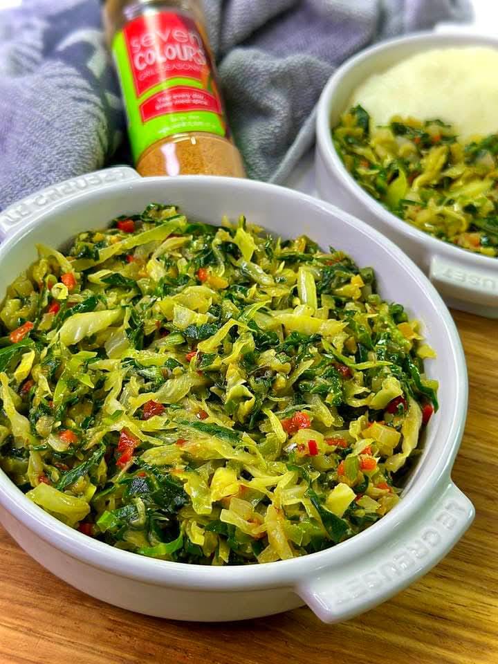 A: Green or Napa cabbage works best because they cook quickly and have a mild flavor that complements the spinach and sesame oil.