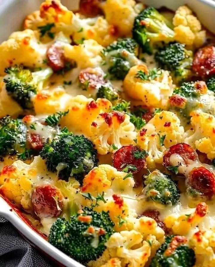 This dish brings together tender broccoli and cauliflower, smoky sausage, and a rich, cheesy sauce for a satisfying comfort meal with a Mediterranean twist. The addition of Dijon mustard and garlic gives it a bright, tangy depth, while cream cheese makes it extra creamy. It’s hearty enough to be a main dish but also works well as a side for gatherings or weeknight dinners.