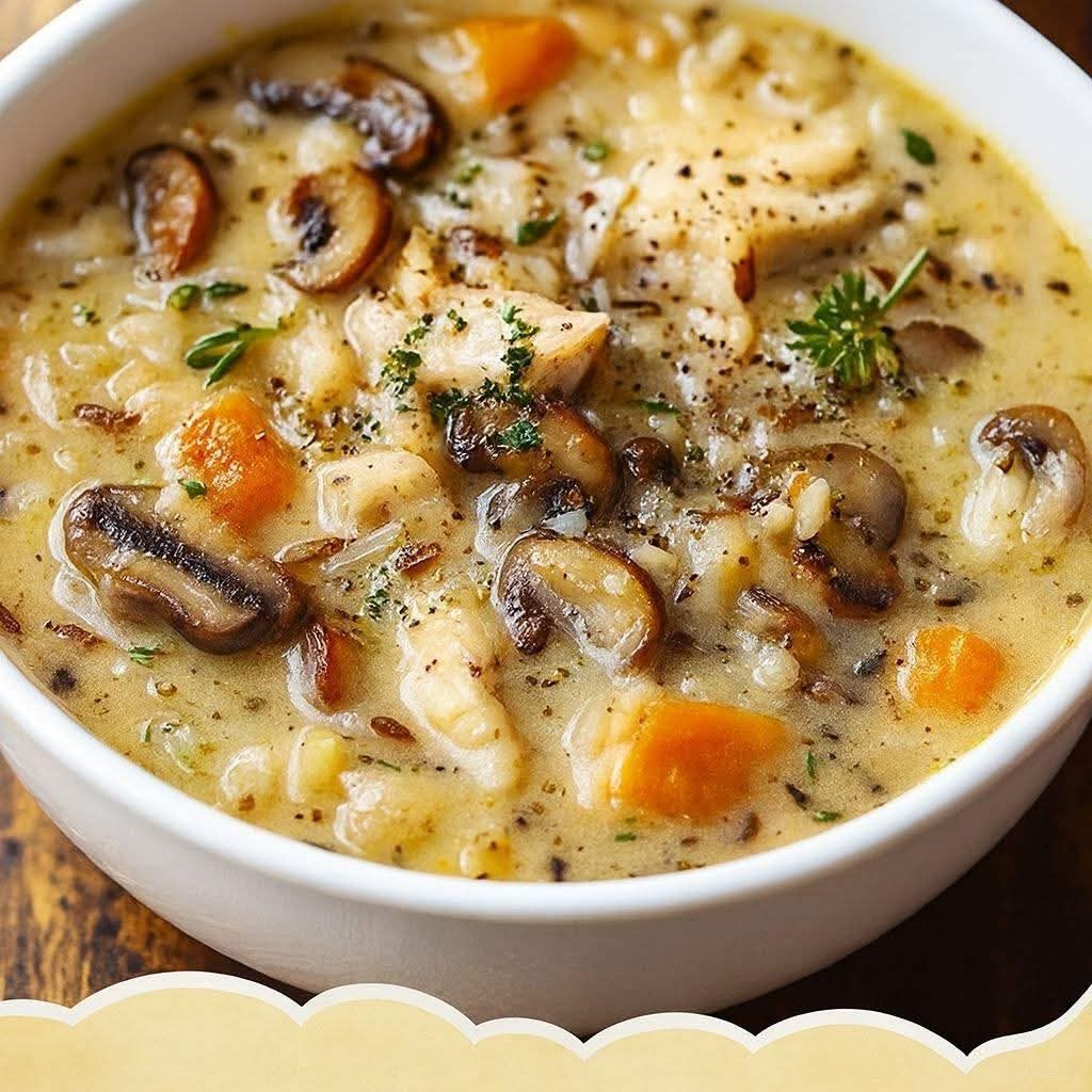 This hearty Mediterranean-inspired soup combines tender chicken, earthy mushrooms, and nutty wild rice in a creamy, herb-infused broth. It’s the perfect comfort food for cooler evenings, yet light enough to enjoy year-round. The thyme and garlic bring warmth, while the cream gives it a rich, velvety finish. Serve it with crusty bread or a fresh salad for a wholesome meal.