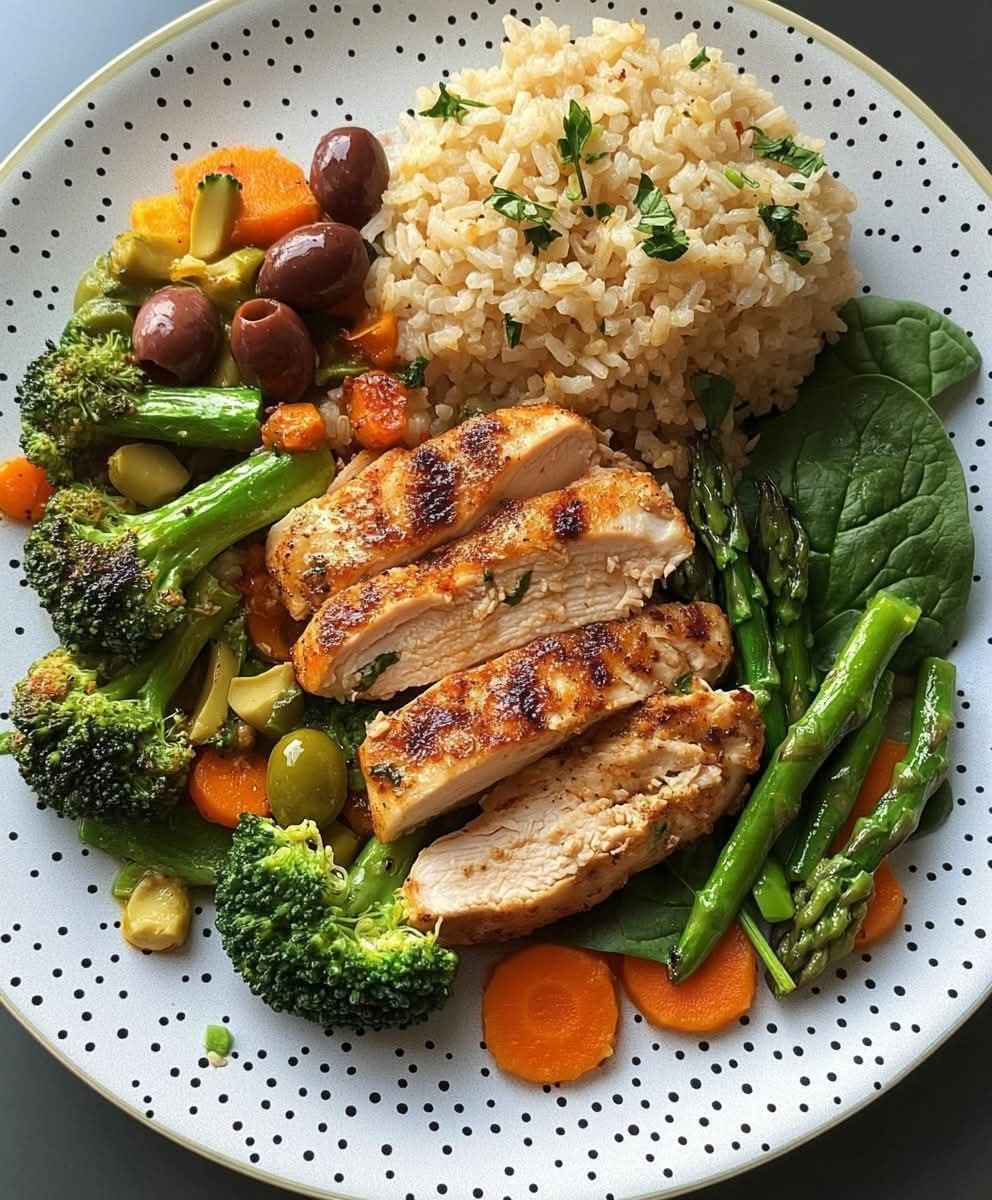 This Mediterranean Chicken Plate with Veggies & Fluffy Rice is a simple yet satisfying meal that combines protein, vegetables, and wholesome grains on a single plate. The flavors are bright, the chicken is juicy, and the vegetables retain a slight sweetness from roasting. With a few optional toppings like feta or olives, you can customize the plate to your taste. It’s perfect for weeknight dinners, meal prep, or even casual entertaining. Quick to assemble, easy to cook, and balanced in nutrition, this dish embodies Mediterranean simplicity and flavor while being versatile enough to suit different dietary preferences.