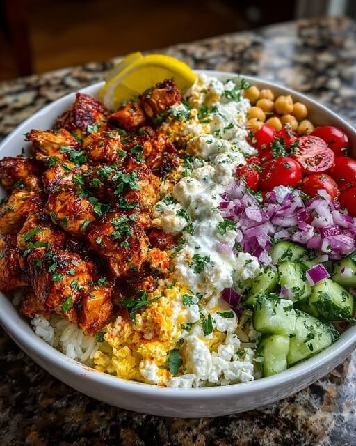The Mediterranean Chicken Power Bowl with Garlic Feta Sauce is a well-rounded meal that brings together fresh ingredients, bold flavors, and satisfying textures. It’s versatile enough to adapt to different dietary needs while staying simple to prepare. Whether you’re eating it fresh or prepping ahead for the week, this bowl offers a reliable, flavorful option that feels both wholesome and indulgent at the same time.