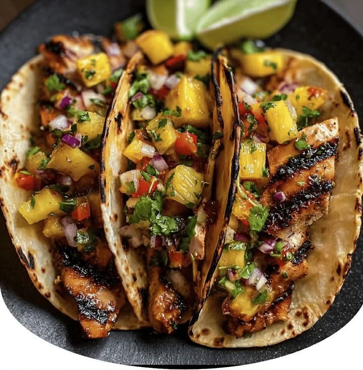 These Mediterranean Chicken Tacos with Grilled Pineapple-Pear Salsa are a bold, fresh, and creative fusion meal. The savory-spiced chicken pairs beautifully with the sweet, charred salsa, while creamy yogurt and tangy feta tie everything together in a soft tortilla wrap. It’s a dish that balances health, flavor, and texture—and it’s perfect for weeknight dinners, summer meals, or even taco-themed parties.