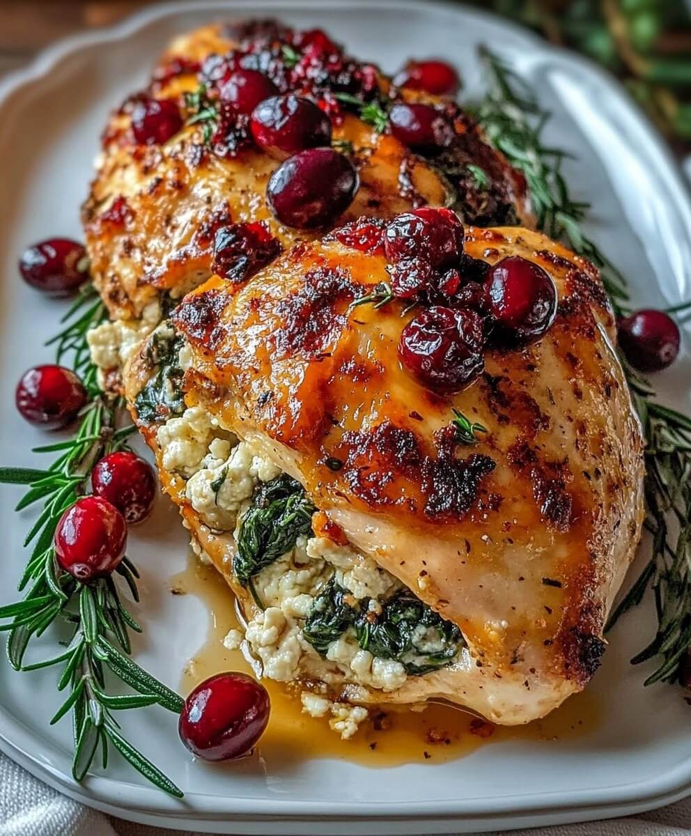 Mediterranean Cranberry & Spinach Ricotta-Stuffed Chicken Breast