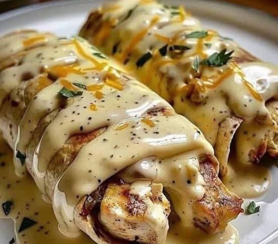 These Mediterranean Creamy Chicken Wraps are rich, comforting, and full of fresh flavor. Tender chicken is mixed with a creamy, seasoned filling, wrapped in soft tortillas, and finished with a light, tangy sauce. The blend of garlic, paprika, and cumin adds a subtle Mediterranean warmth, while the creamy texture makes every bite satisfying. Perfect for quick dinners, packed lunches, or casual entertaining.