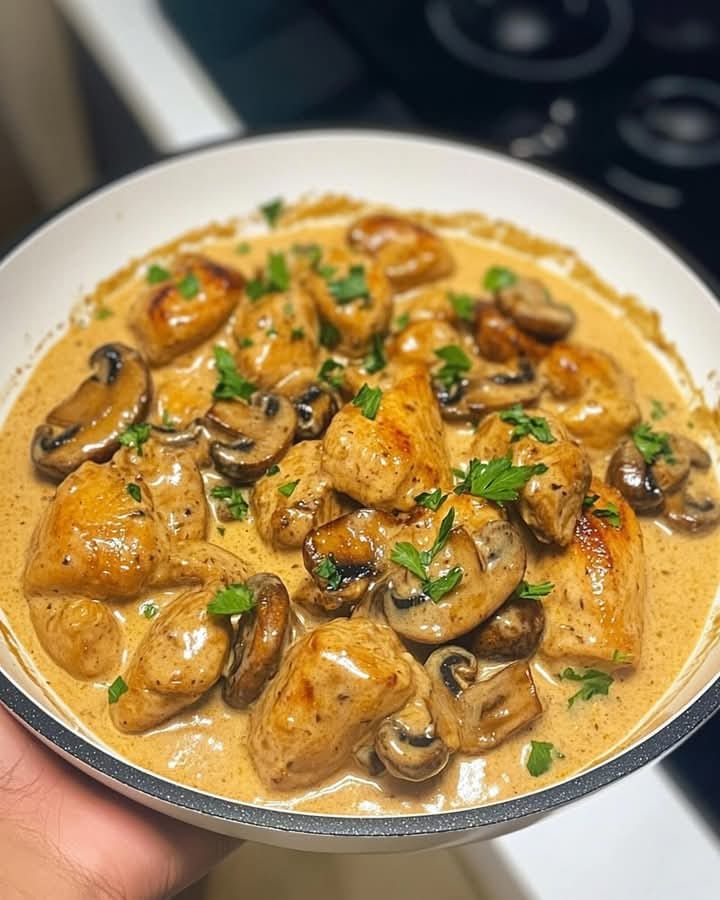 Succulent seared chicken pieces, golden-browned mushrooms, and a velvety garlic cream sauce come together in this stunning Mediterranean-inspired skillet dish. With classic herbs, aromatic garlic, a touch of cream, and earthy mushrooms, this recipe is the perfect balance of indulgent and wholesome. It’s quick enough for a weeknight dinner yet luxurious enough for guests. Serve it over pasta, rice, couscous, or crusty bread to soak up every drop of the creamy goodness.