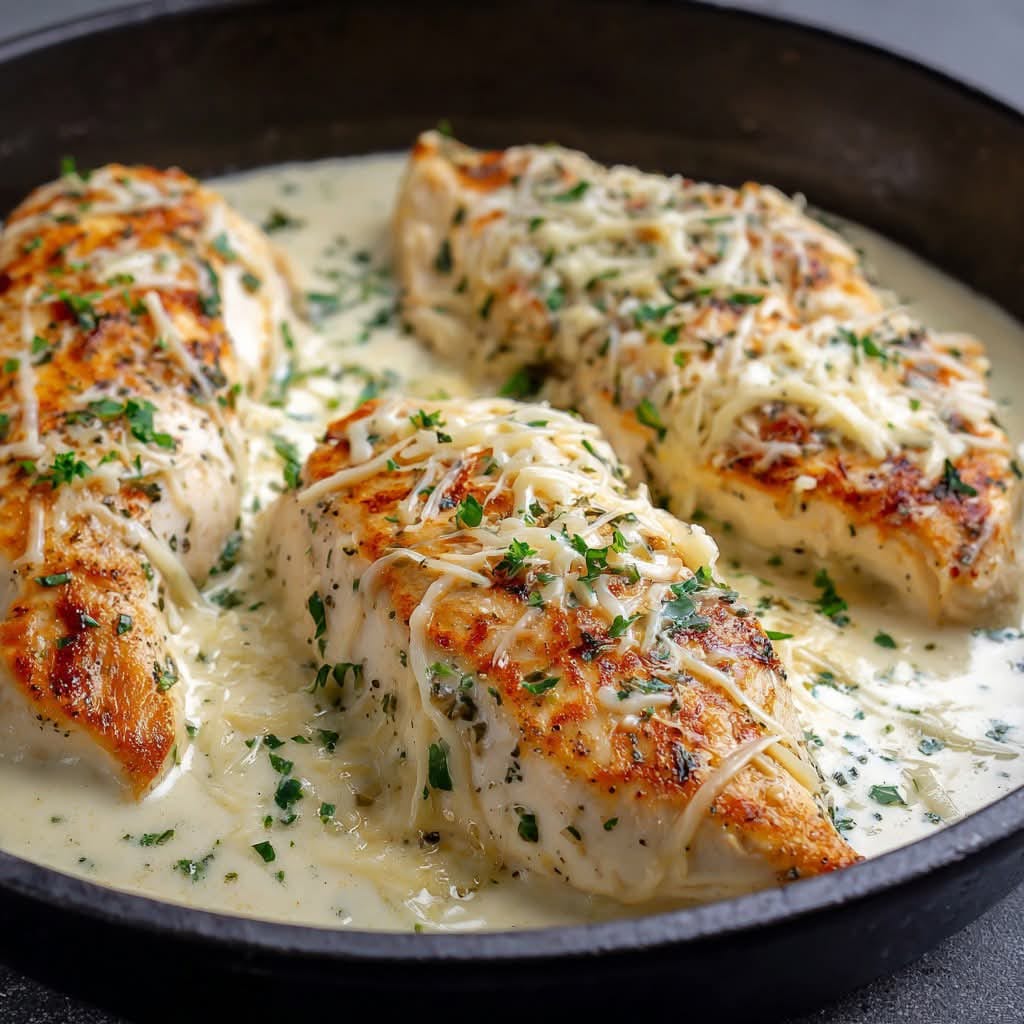 This is a simple, cozy chicken bake that gives you tender pieces of chicken wrapped in a creamy garlic and herb sauce. It’s the kind of dish you can put together on a busy night without much effort, but it still tastes like something you’d serve to guests. The herbs, cream, and cheese create a warm Mediterranean feel, and it pairs well with rice, pasta, or roasted vegetables.