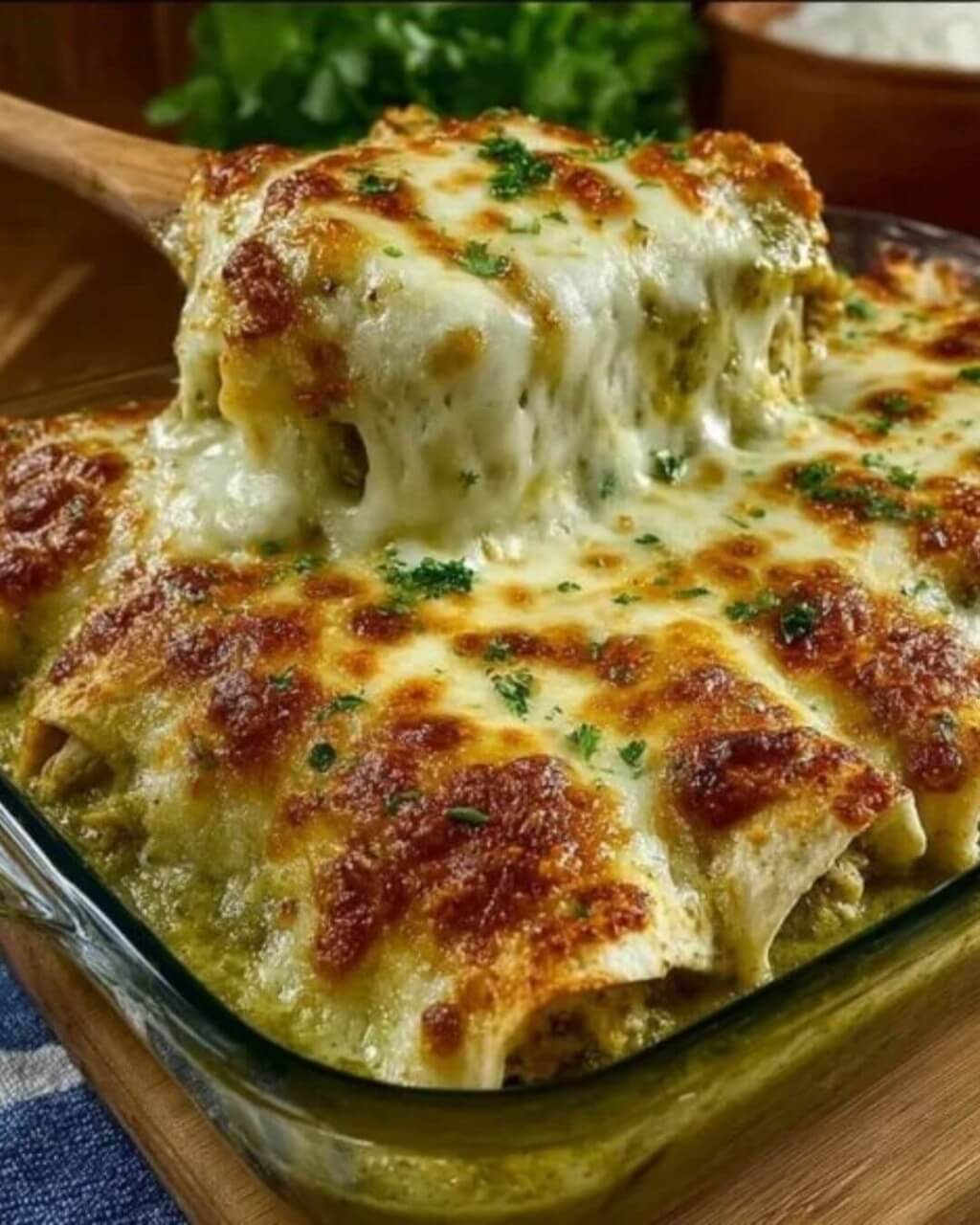 The Mediterranean Creamy Green Chile Chicken Enchiladas bring together the comforting, cheesy indulgence of a classic enchilada with bright Mediterranean flavors. Cream cheese, feta, and oregano give the filling richness and depth, while the green chile sauce adds a fresh, zesty kick. Easy to prepare, freezer-friendly, and endlessly adaptable, this dish is perfect for weeknight dinners or special gatherings where you want both comfort and flair on the table.