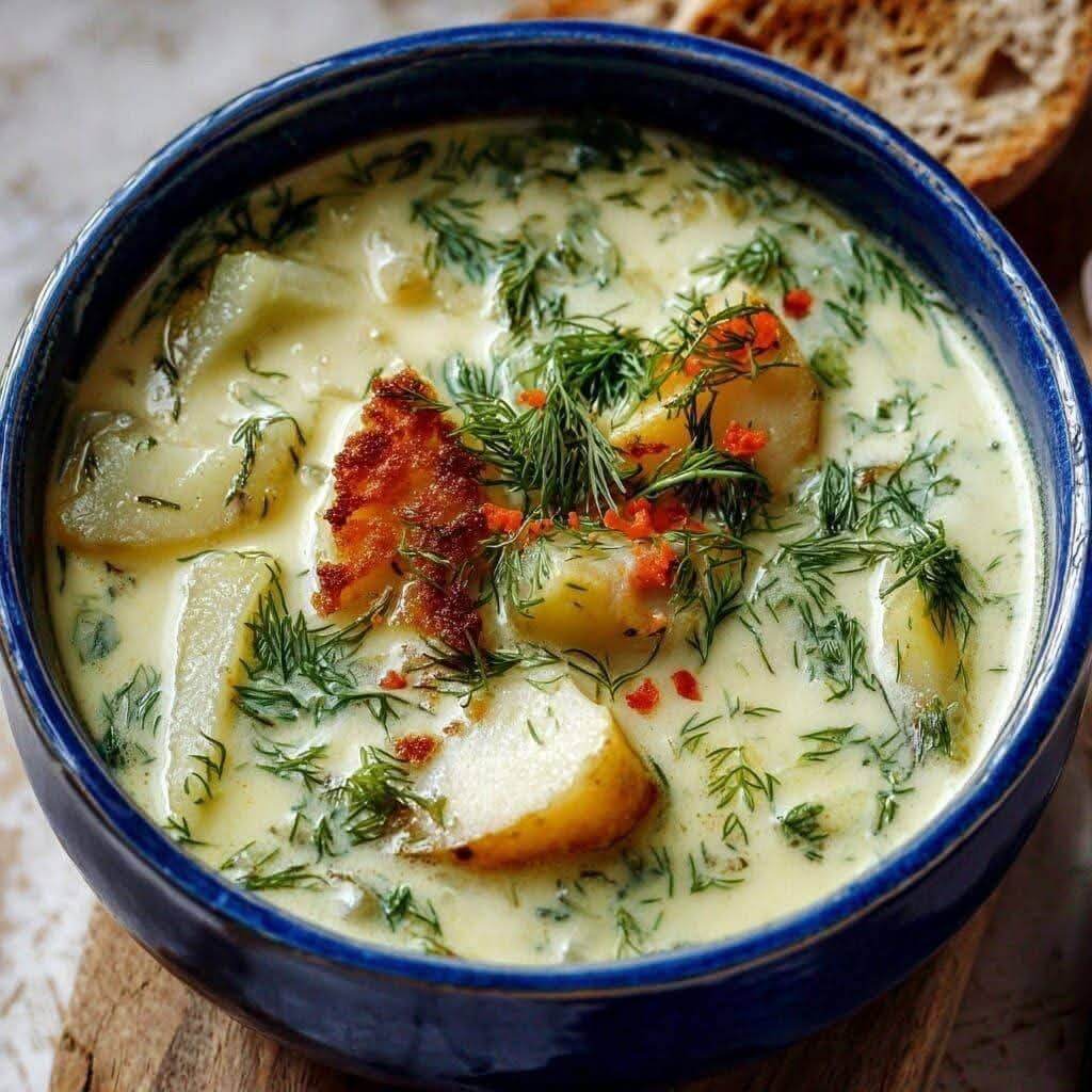 This soup is a cozy blend of tender potatoes, fresh dill, garlic and a touch of cream. It has the warmth of a classic comfort dish with bright Mediterranean flavors. The texture is silky and rich, but the ingredients stay simple and familiar. It works well as a light dinner, a starter or something warm to sip during colder days. The dill and lemon give it a clean finish that keeps it from feeling heavy.