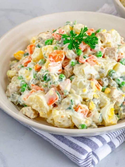 This Mediterranean twist on the classic Russian salad (also known as Olivier Salad) adds a fresh, vibrant touch to a traditional favorite. It’s rich, creamy, and full of texture — a mix of tender vegetables, tangy dressing, and a hint of Mediterranean flair through olive oil, herbs, and sometimes a touch of lemon. Unlike the heavier versions, this recipe uses a lighter, yogurt-based dressing that keeps it refreshing and balanced. It’s perfect as a side dish for grilled meats, a picnic salad, or even a light meal on its own.