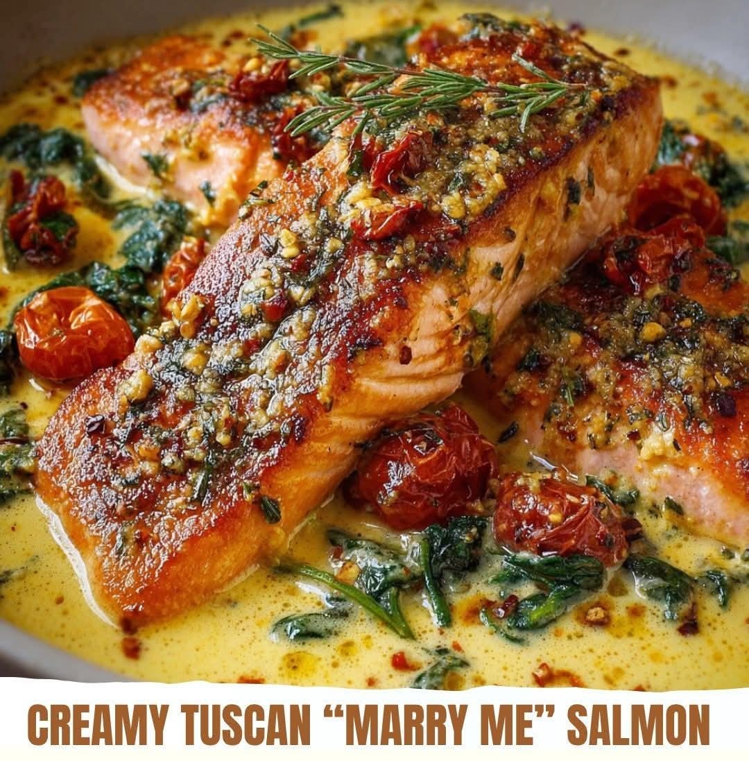This Mediterranean Creamy Tuscan “Marry Me” Salmon is rich, flavorful, and elegant enough for a special dinner while still simple to prepare. Salmon fillets are pan-seared to perfection and served with a creamy Tuscan sauce made with sun-dried tomatoes, spinach, and Parmesan. The sauce is silky, tangy, and slightly spicy if you include the red pepper flakes, making it a perfect match for the tender salmon. Serve with pasta, rice, or roasted vegetables for a complete Mediterranean-inspired meal.